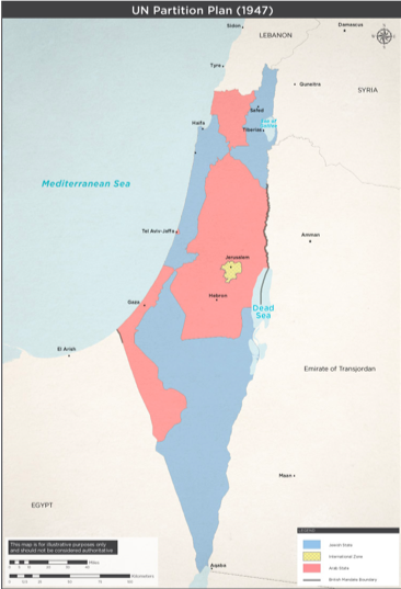 UN decision-making: In the aftermath World War II and the Holocaust, and after thirty years of British rule, during which the British diluted their obligations under the Mandate to promote Jewish immigration and settlement, the UN in 1947 passed the Palestine Partition Plan (Resolution 181). The plan proposed dividing the region west of the Jordan River into a Jewish and an Arab State side by side.
